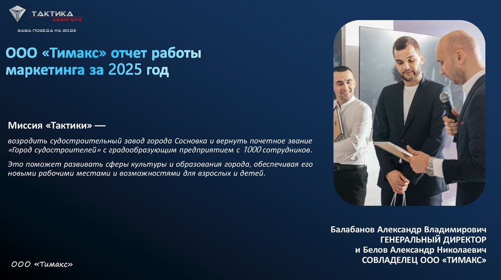 Миссия «Тактики» —возродить судостроительный завод города Сосновка и вернуть почетное звание