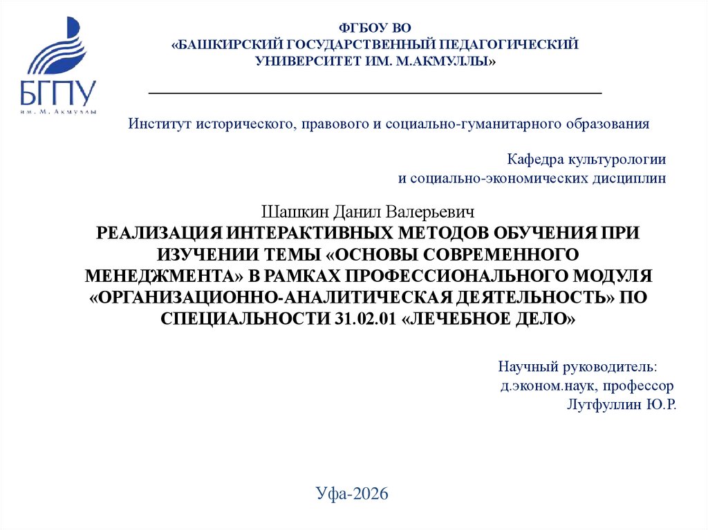 ФГБОУ ВО«БАШКИРСКИЙ ГОСУДАРСТВЕННЫЙ ПЕДАГОГИЧЕСКИЙ