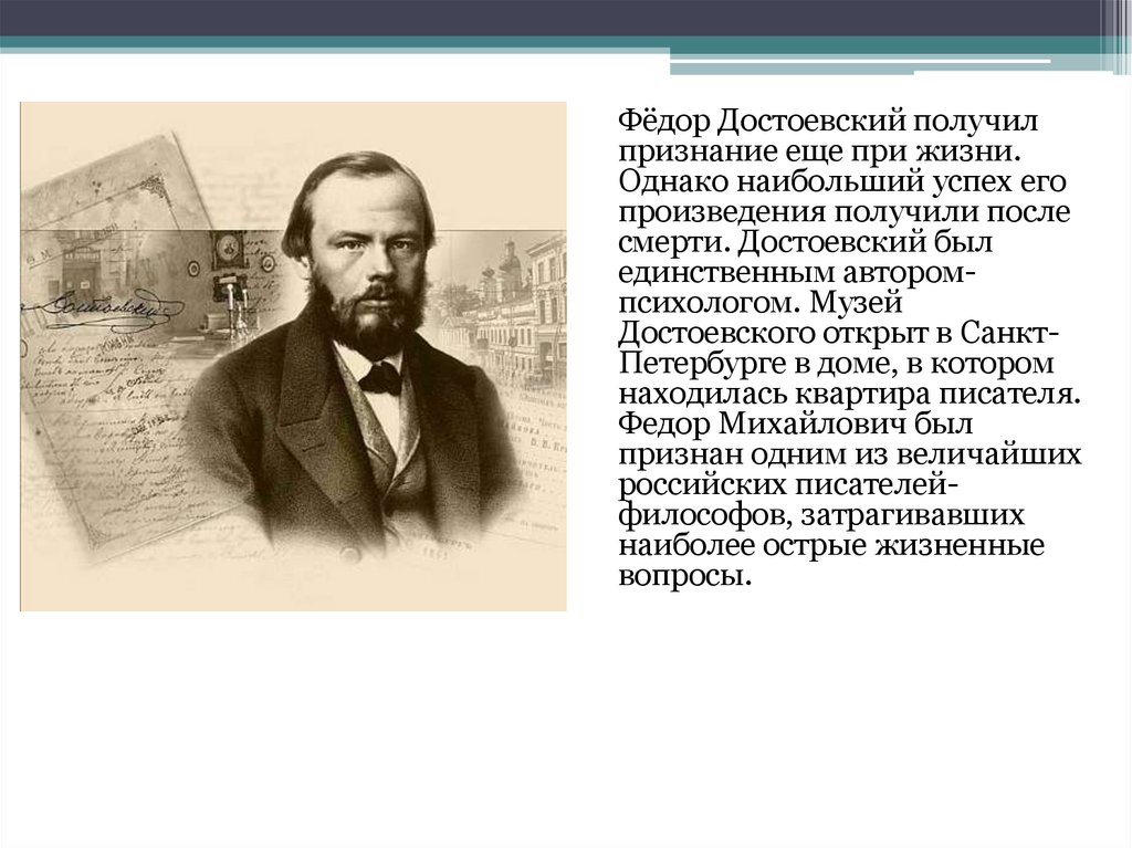 Фёдор Достоевский получилпризнание еще при жизни.