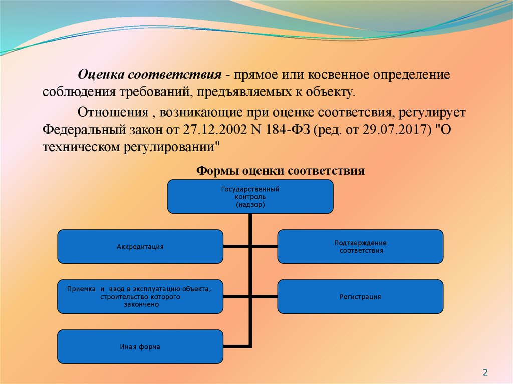 Оценка соответствия - прямое или косвенное определениесоблюдения требований, предъявляемых к объекту.