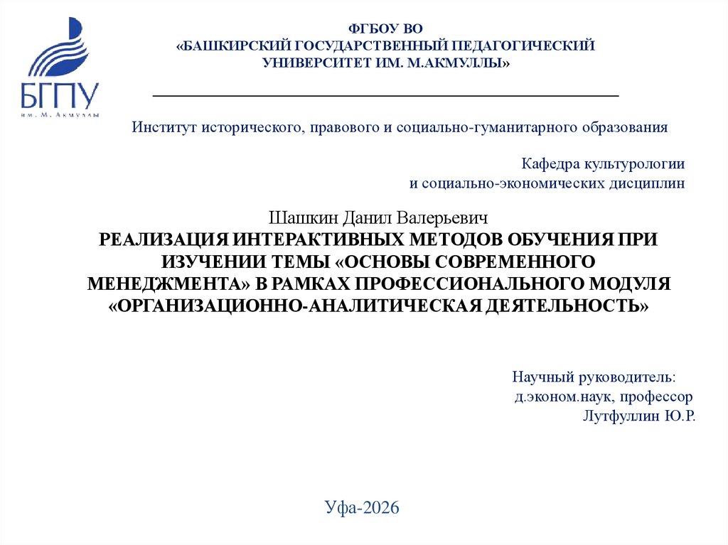 ФГБОУ ВО«БАШКИРСКИЙ ГОСУДАРСТВЕННЫЙ ПЕДАГОГИЧЕСКИЙ