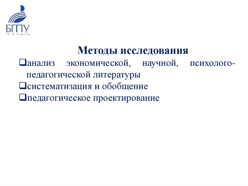 Методы исследованияанализ экономической, научной,