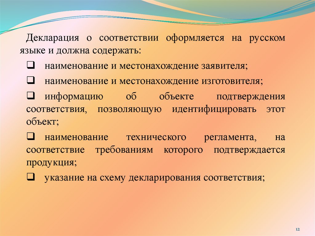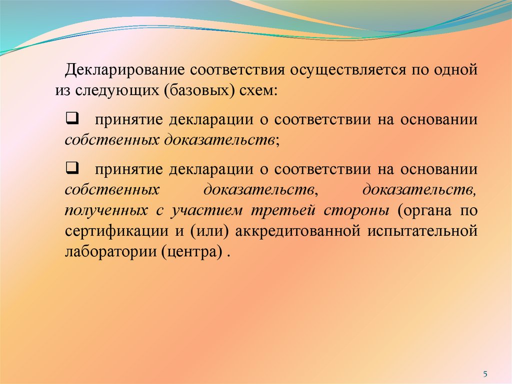 Декларирование соответствия осуществляется по однойиз следующих (базовых) схем: