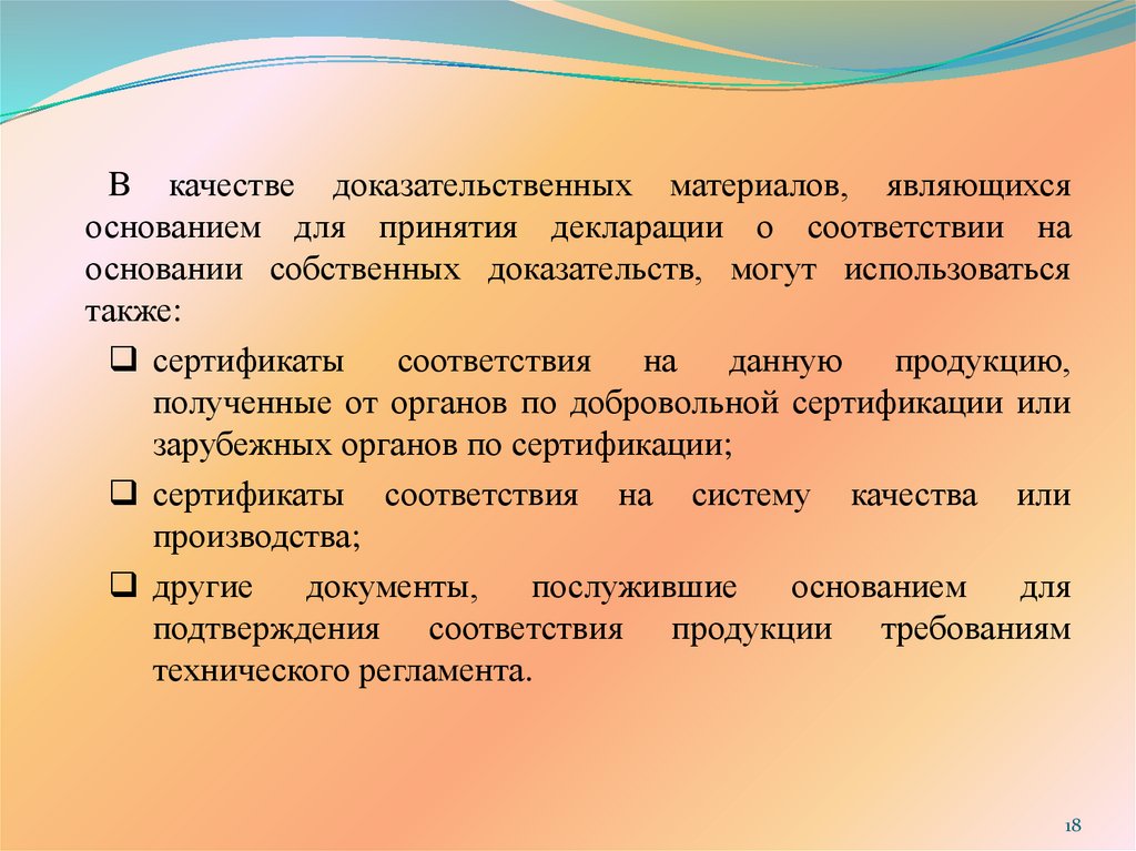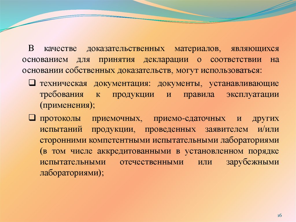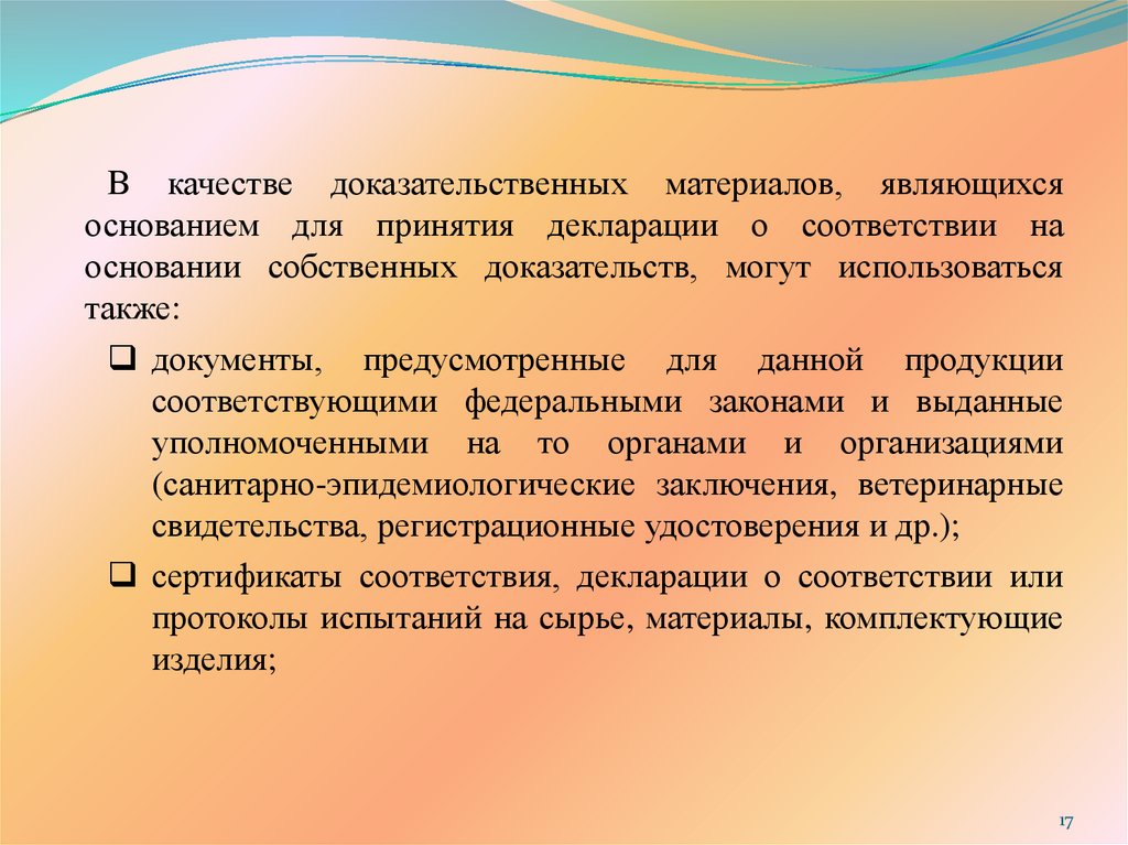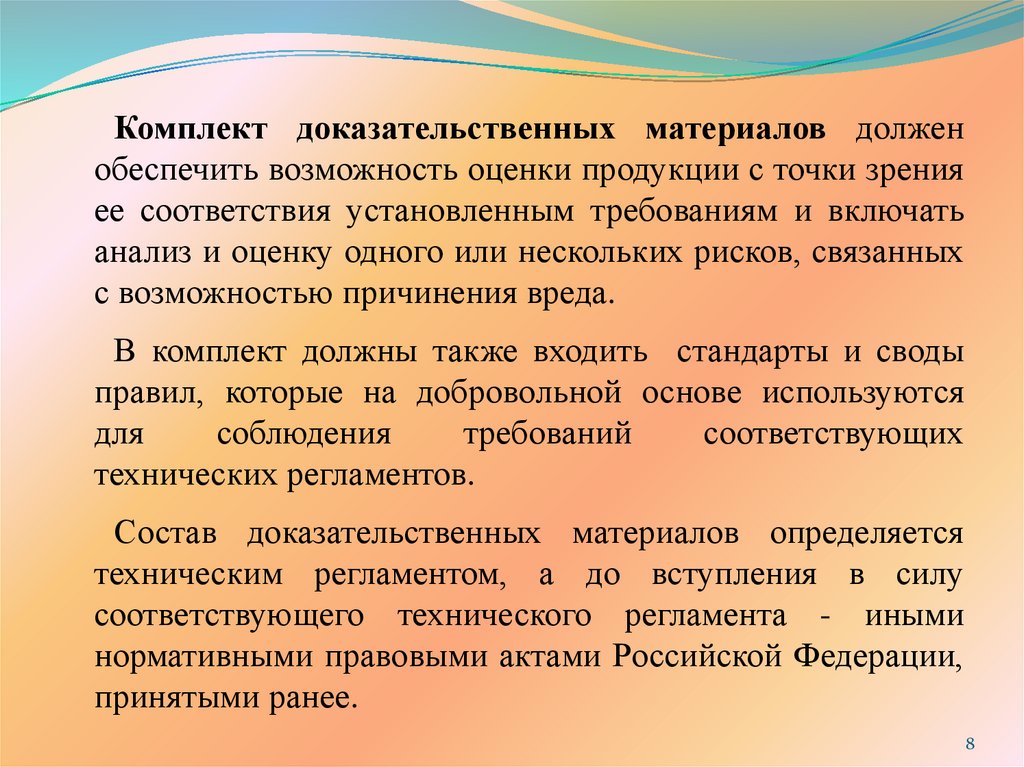 Комплект доказательственных материалов долженобеспечить возможность оценки продукции с точки зрения