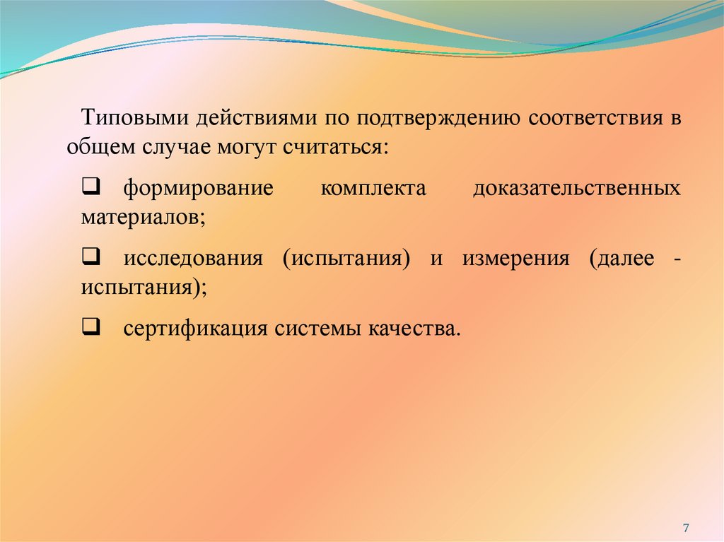 Типовыми действиями по подтверждению соответствия вобщем случае могут считаться: