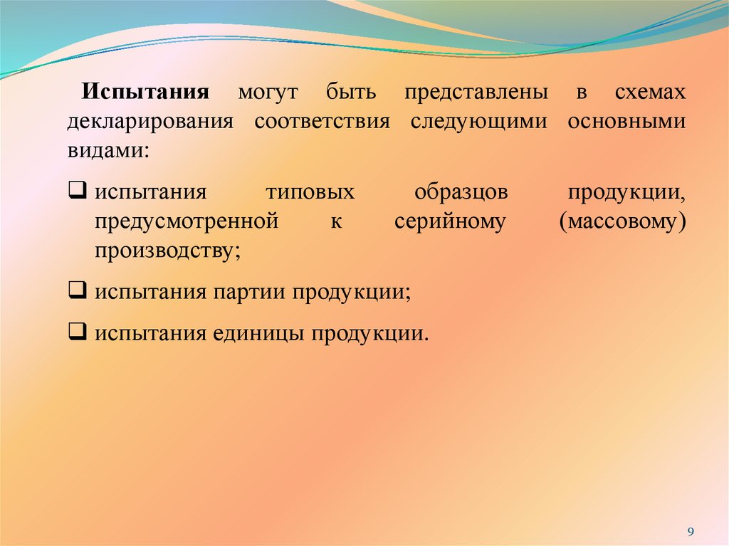 Испытания могут быть представлены в схемахдекларирования соответствия следующими основными