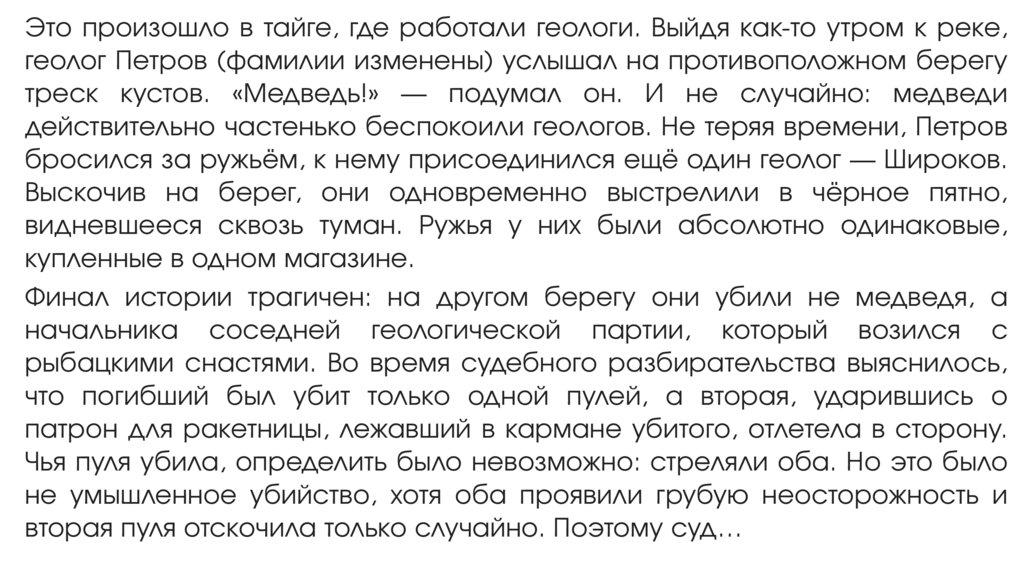 вторая пуля отскочила только случайно. Поэтому суд…