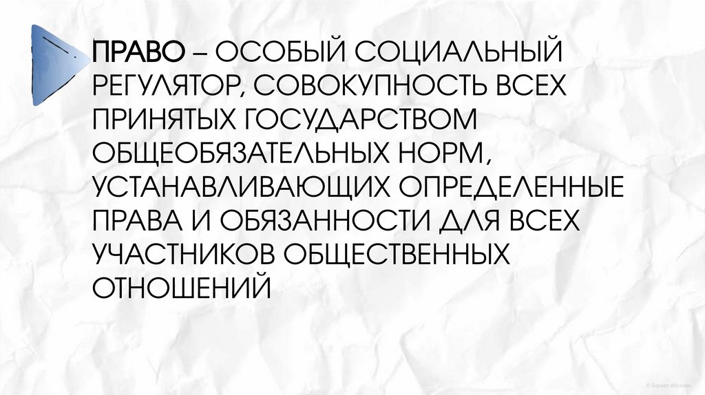 ПРАВО – ОСОБЫЙ СОЦИАЛЬНЫЙРЕГУЛЯТОР, СОВОКУПНОСТЬ ВСЕХ