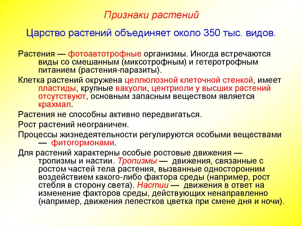 Признаки растенийЦарство растений объединяет около 350 тыс. видов.