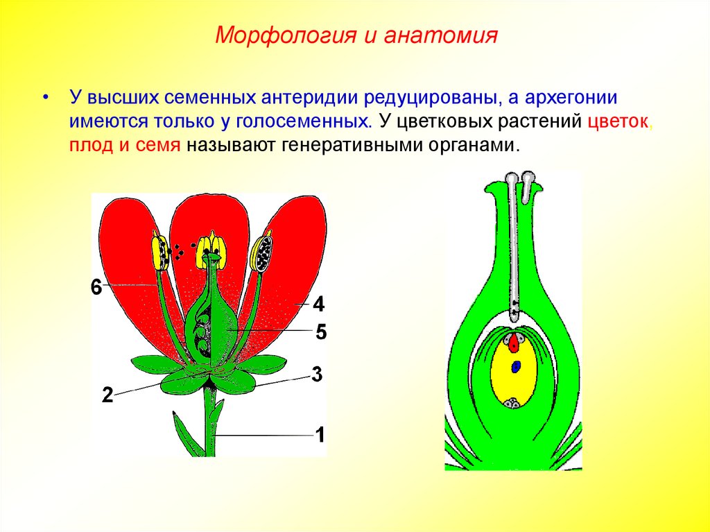 Морфология и анатомия• У высших семенных антеридии редуцированы, а архегонии