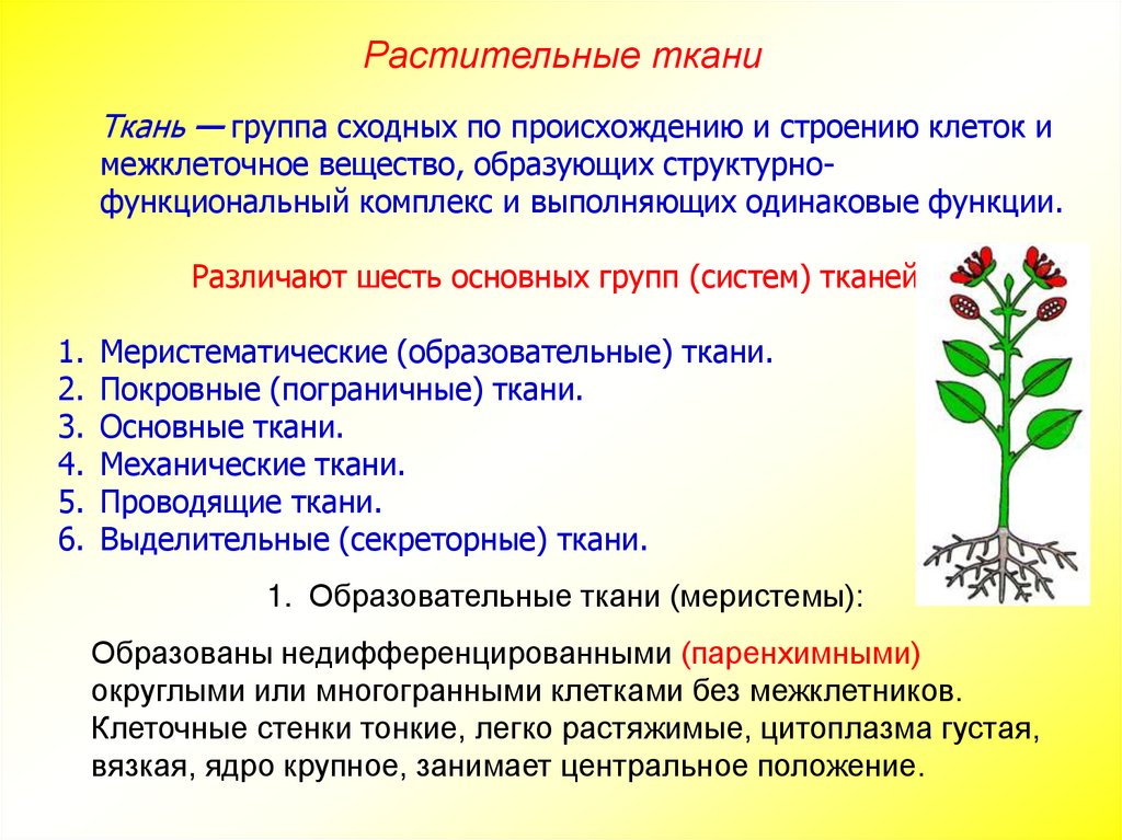 Растительные тканиТкань — группа сходных по происхождению и строению клеток и