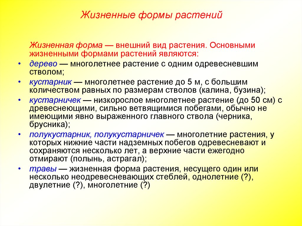 Жизненные формы растенийЖизненная форма — внешний вид растения. Основными