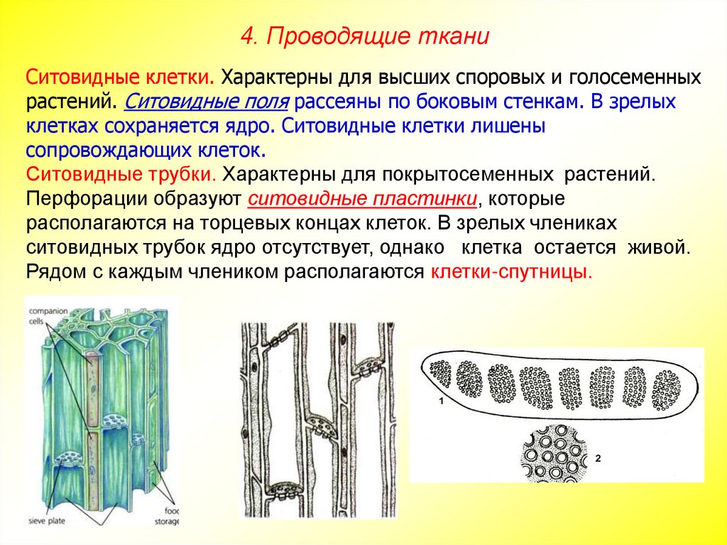 4. Проводящие тканиСитовидные клетки. Характерны для высших споровых и голосеменных