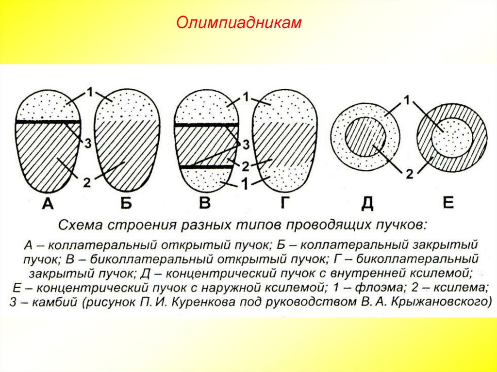 Флоэма. 15. Трахеи. 16. Трахеиды. 17. Ситовидные трубки. 18.