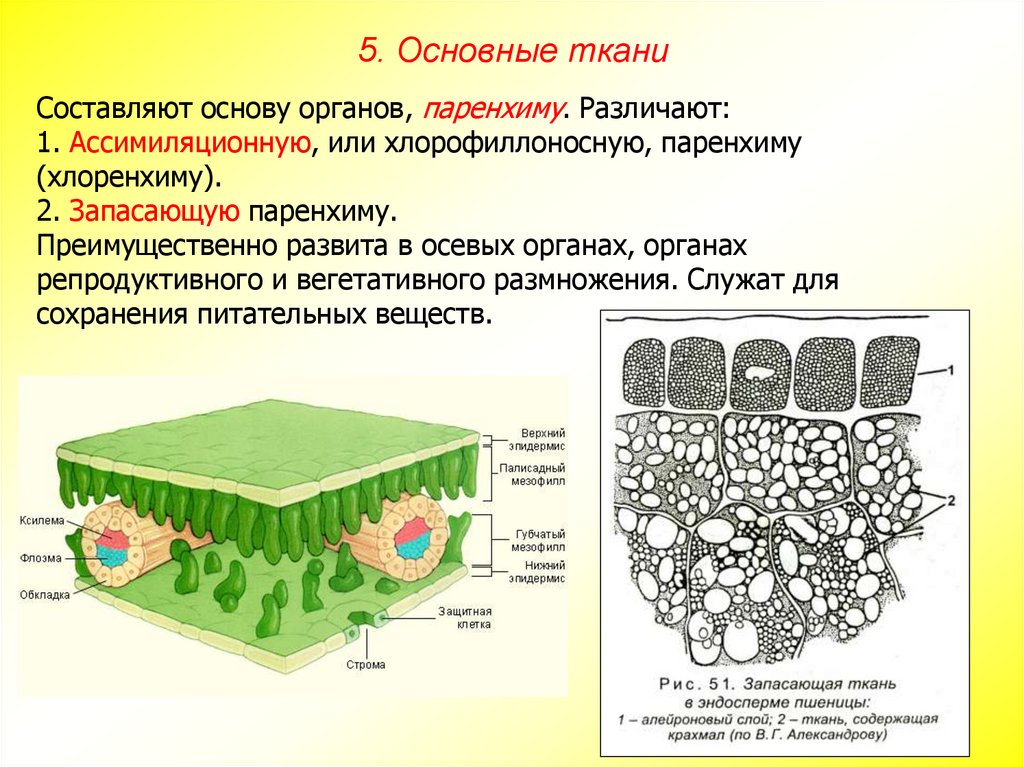 5. Основные тканиСоставляют основу органов, паренхиму. Различают: