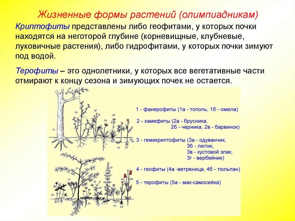 Жизненные формы растений (олимпиадникам)Криптофиты представлены либо геофитами, у которых почки