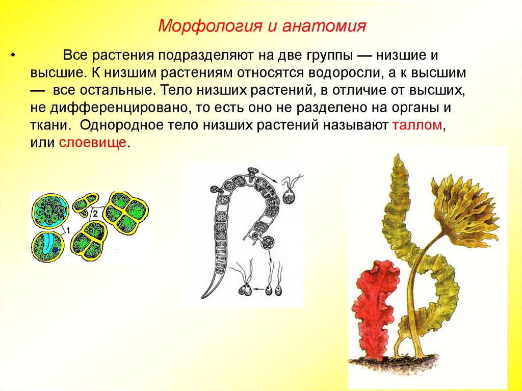 Морфология и анатомияВсе растения подразделяют на две группы — низшие и