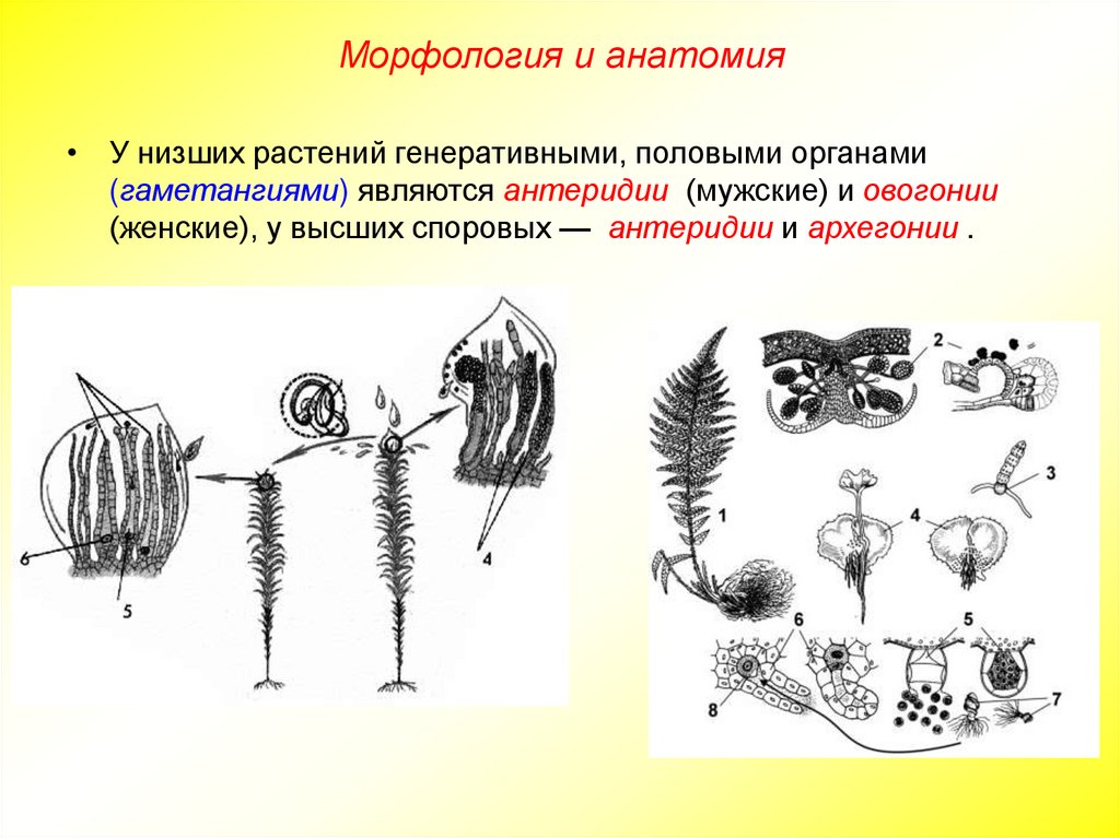 Морфология и анатомия• У низших растений генеративными, половыми органами