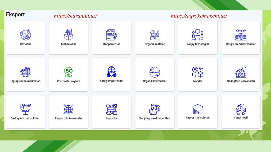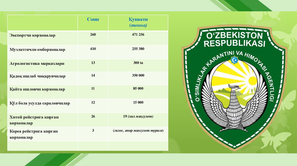 2. Фарғон вилояти Ўсимликлар карантини ва химояси бошқармаси назорати остидаги Экспортга кўмаклашув Ташқи иқтисодий фаолияти ва