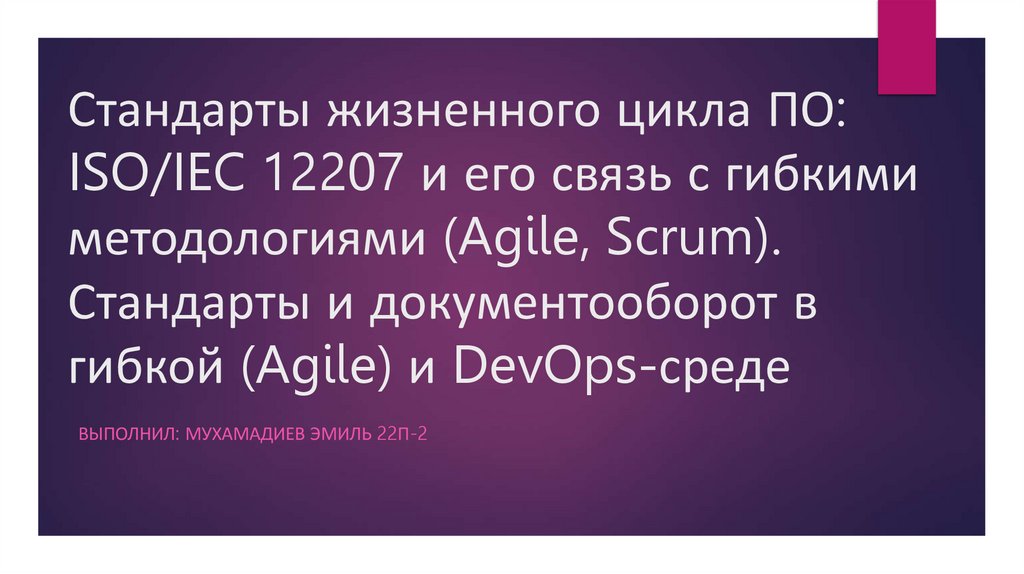 1. Стандарты жизненного цикла ПО: ISO/IEC 12207 и его связь с гибкими методологиями (Agile, Scrum). Стандарты и документооборот в