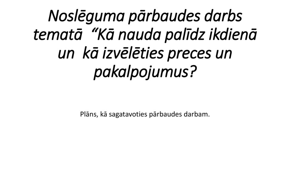 1. Noslēguma pārbaudes darbs tematā “Kā nauda palīdz ikdienā un kā izvēlēties preces un pakalpojumus?