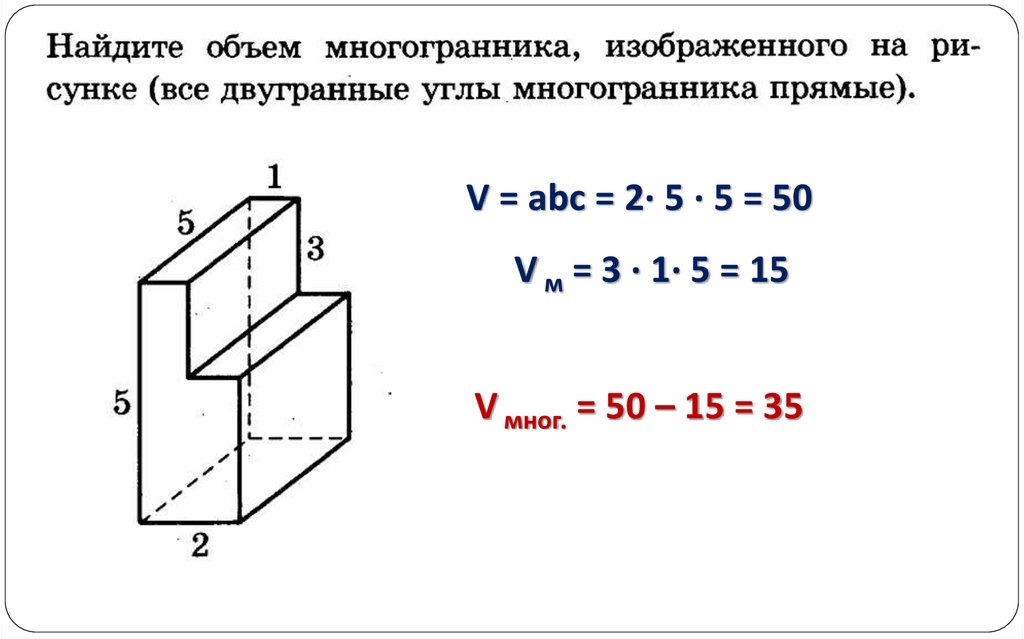 V = abc = 2· 5 · 5 = 50V м = 3 · 1· 5 = 15