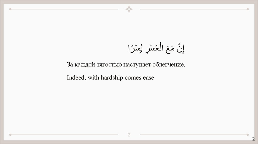 ِإ َّن َم َع ْالع ْس ِر ي ْس ًراЗа каждой тягостью наступает облегчение.