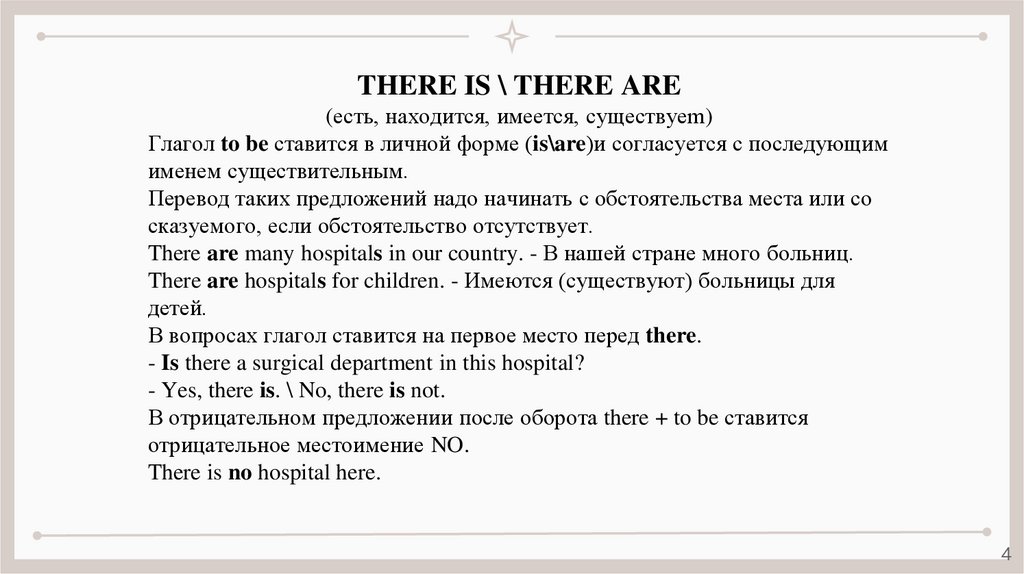 THERE IS \ THERE ARE(есть, находится, имеется, существуem)