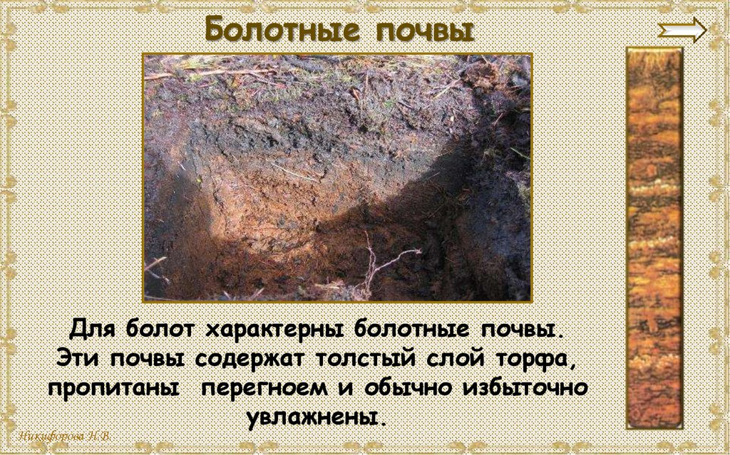 Болотные почвыДля болот характерны болотные почвы.