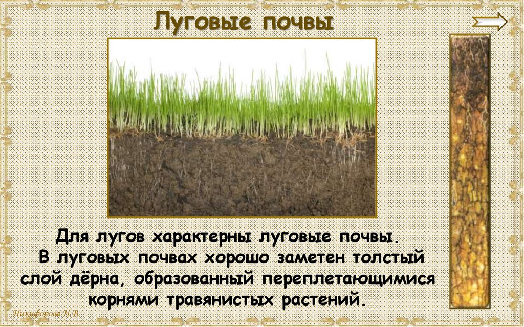 Луговые почвыДля лугов характерны луговые почвы.