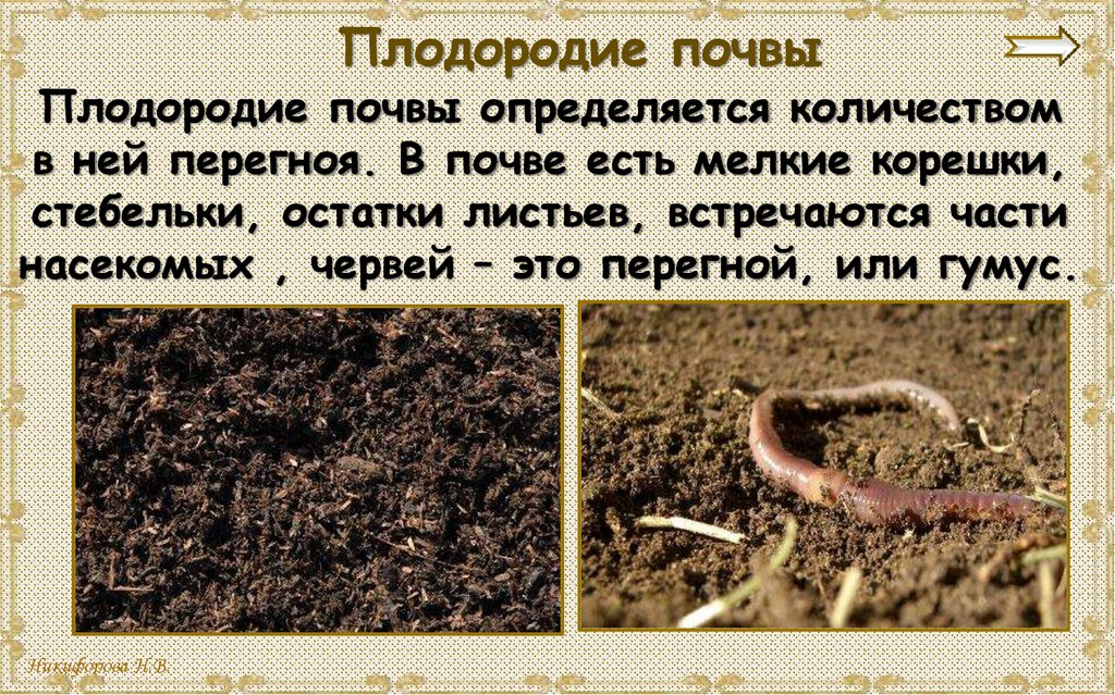 и перегной. Плодородие почвы зависит от количества