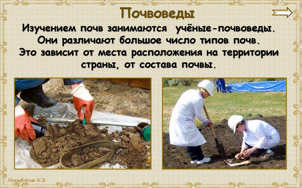 ПочвоведыИзучением почв занимаются учёные-почвоведы.