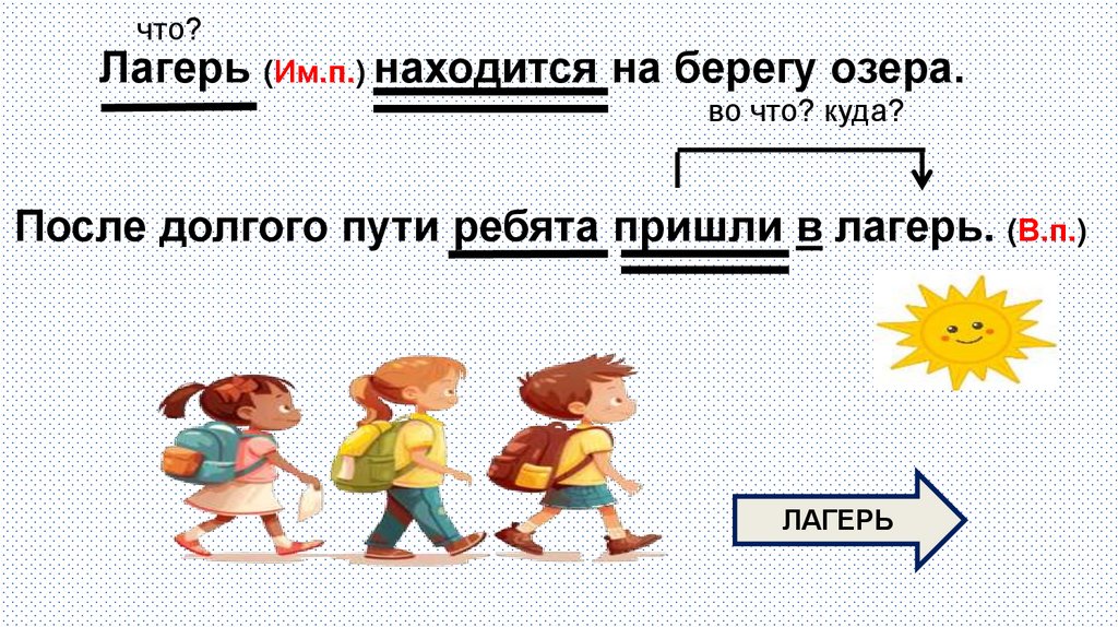 После долгого пути ребята пришли в лагерь. (В.п.)