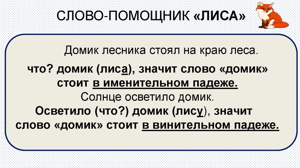 СЛОВО-ПОМОЩНИК «ЛИСА»Домик лесника стоял на краю леса.