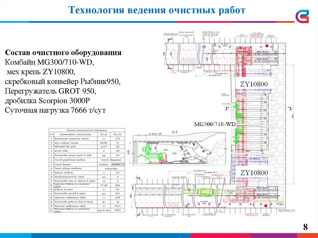Применение механизированной крепи ZY10800 с очистным комбайном MG300/710WD. Суточная нагрузка 7666 т/сут.