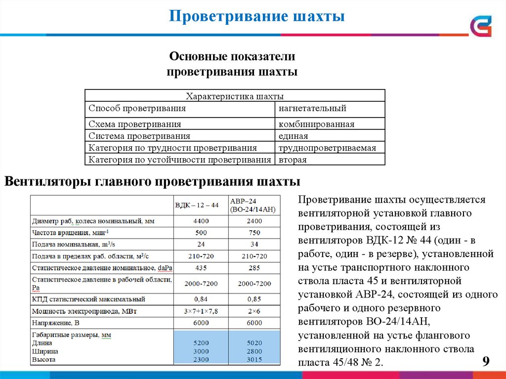 Проветривание шахтыОсновные показатели