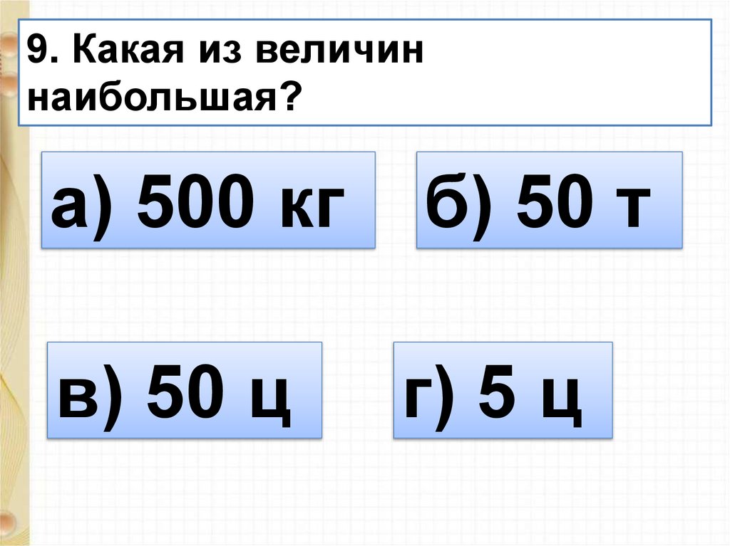 9. Какая из величиннаибольшая?