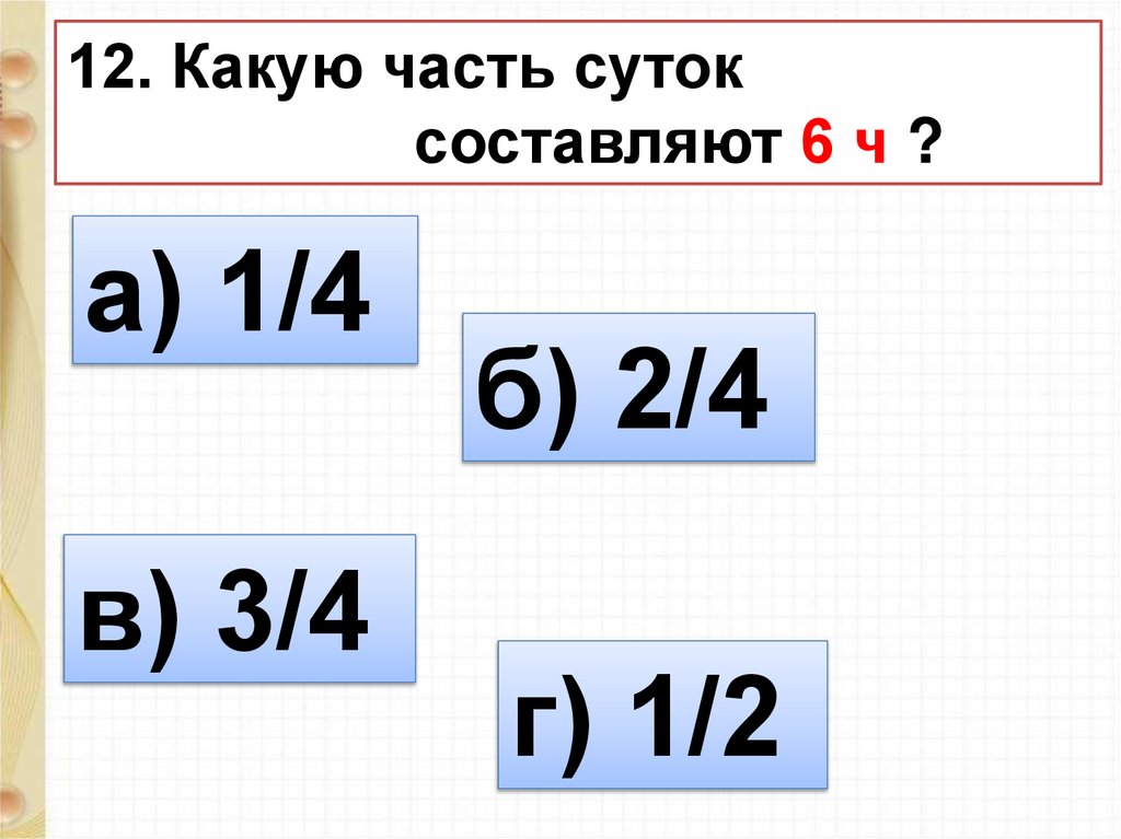12. Какую часть сутоксоставляют 6 ч ?
