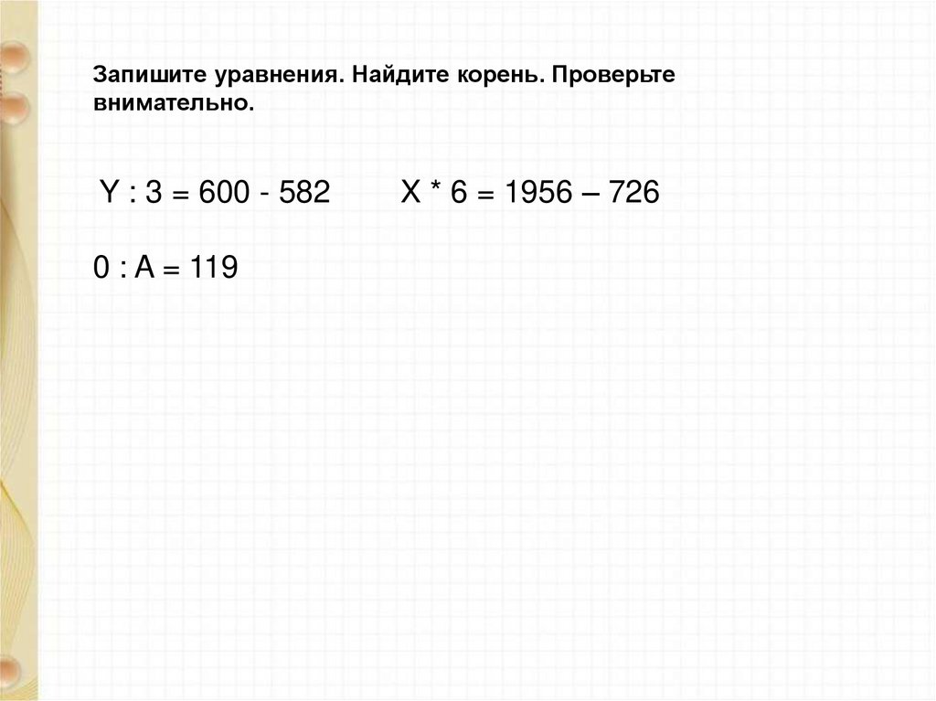 Запишите уравнения. Найдите корень. Проверьтевнимательно.