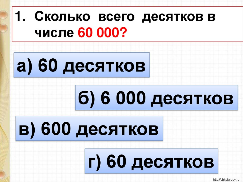 1. Сколько всего десятков вчисле 60 000?