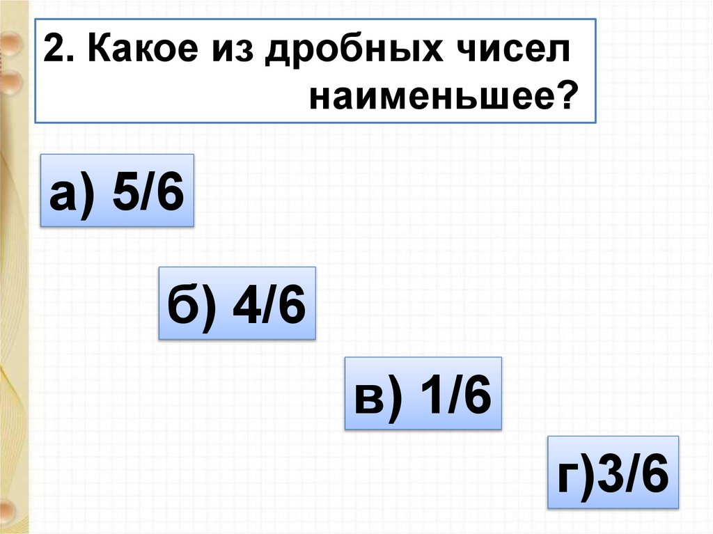 2. Какое из дробных чиселнаименьшее?