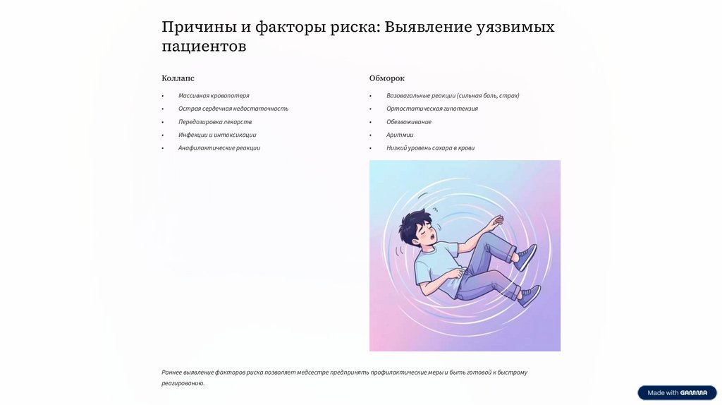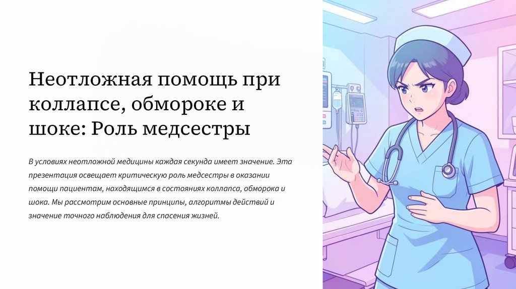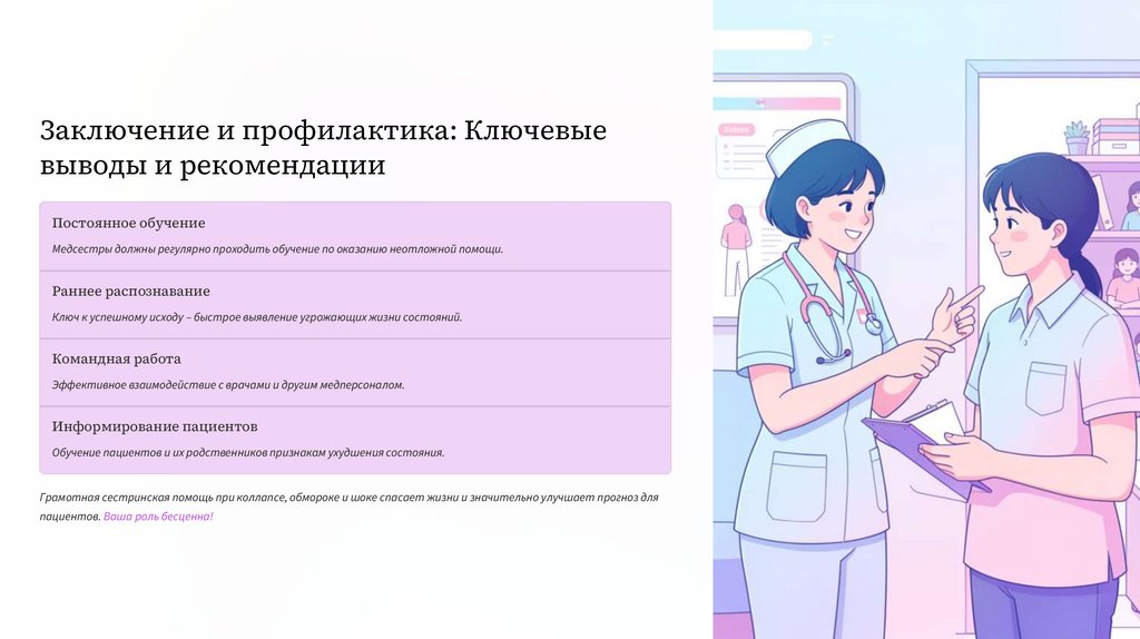 Грамотная сестринская помощь при коллапсе, обмороке и шоке спасает жизни и значительно улучшает прогноз для