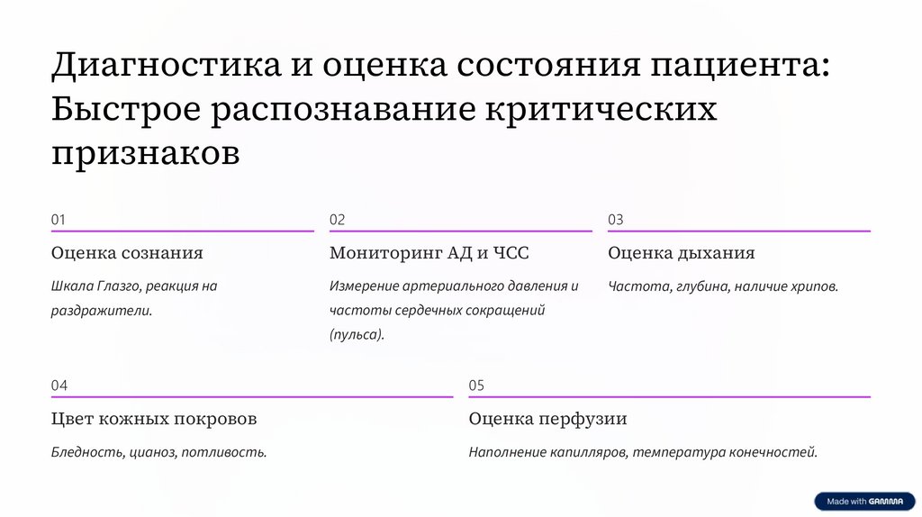Диагностика и оценка состояния пациента:Быстрое распознавание критических
