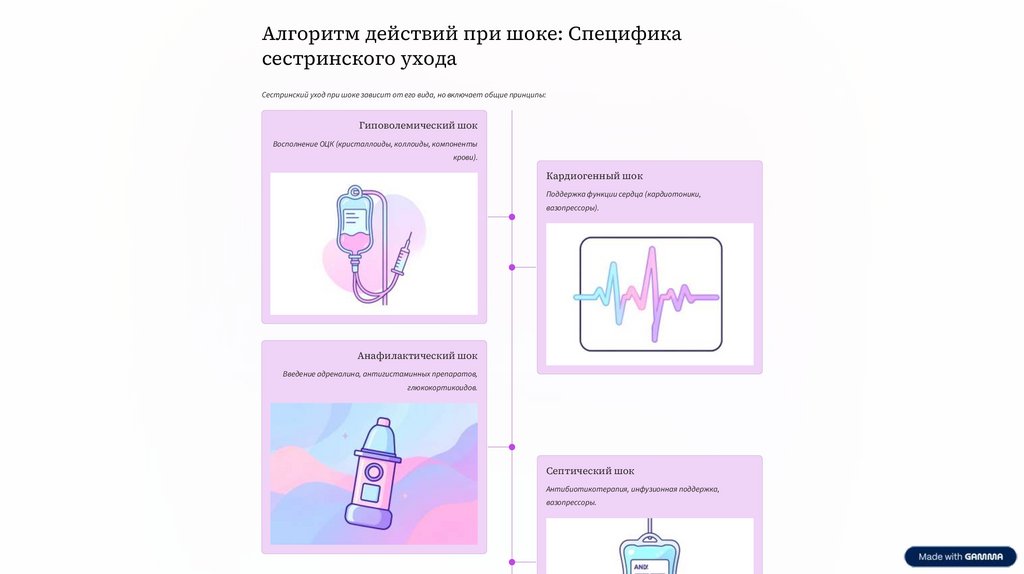 Сестринский уход при шоке зависит от его вида, но включает общие принципы: