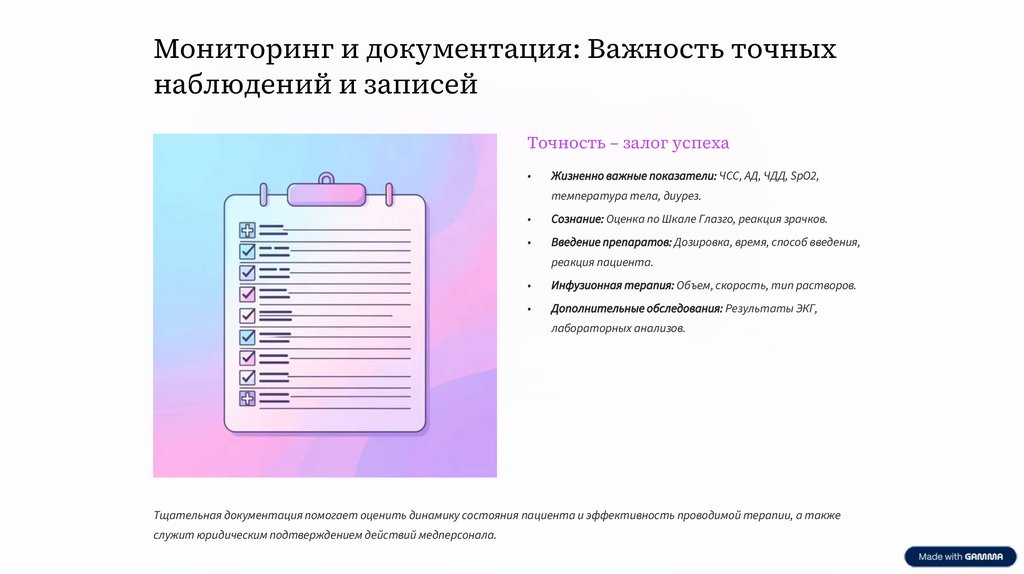Тщательная документация помогает оценить динамику состояния пациента и эффективность проводимой терапии, а также
