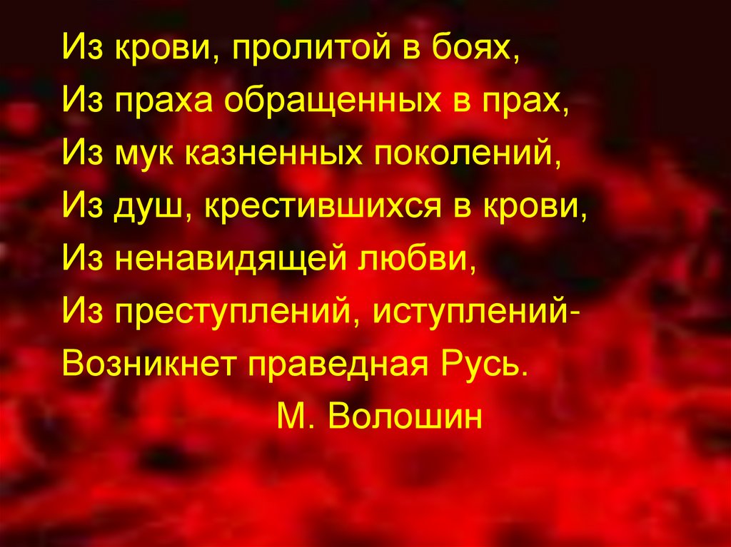 Из преступлений, иступленийВозникнет праведная Русь.