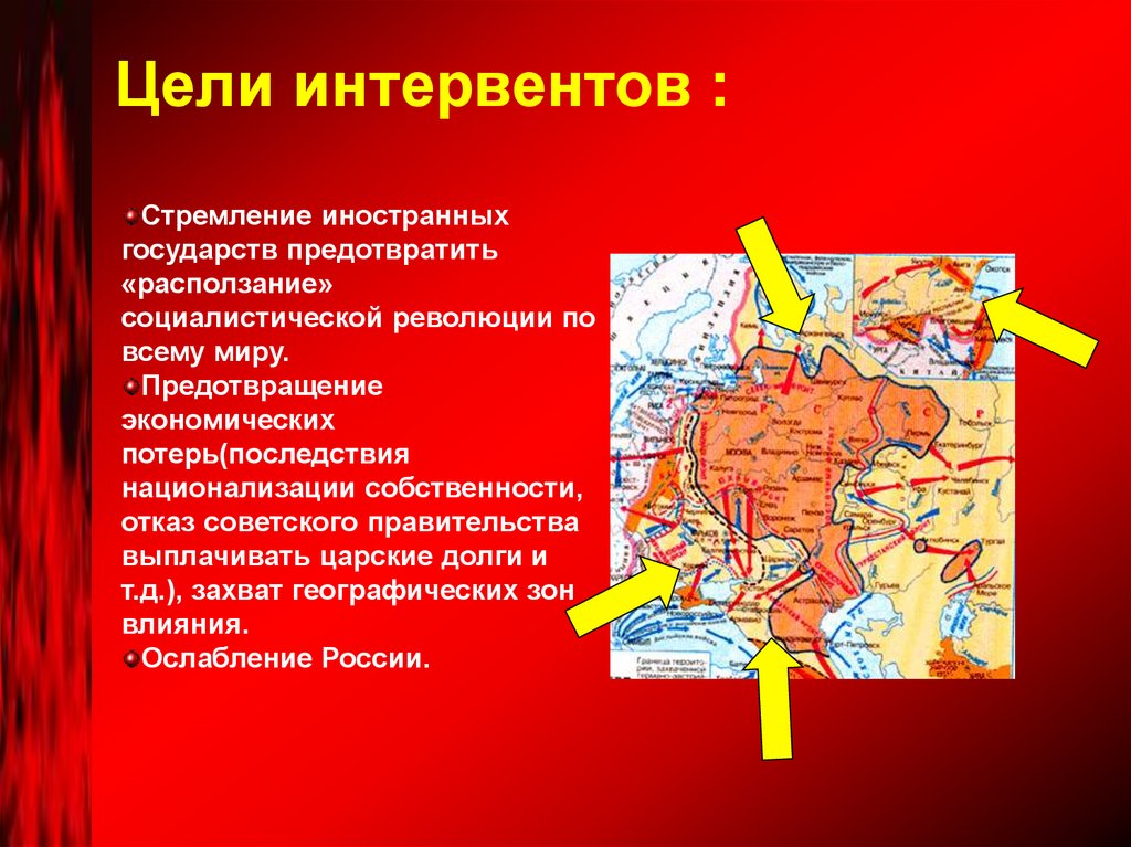 Цели интервентов :Стремление иностранных