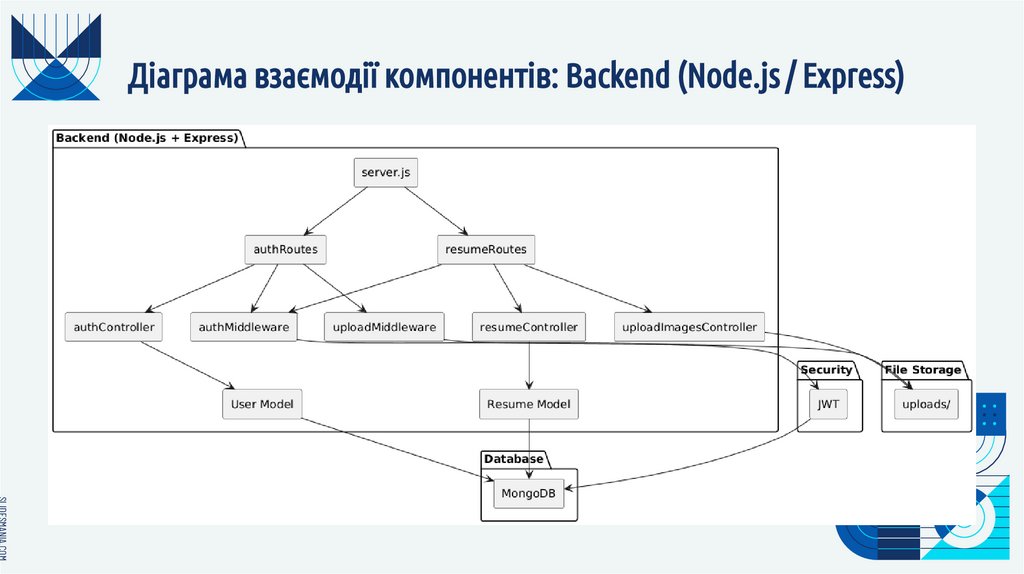 Діаграма взаємодії компонентів: Backend (Node.js / Express)SLIDESMANIA.COM