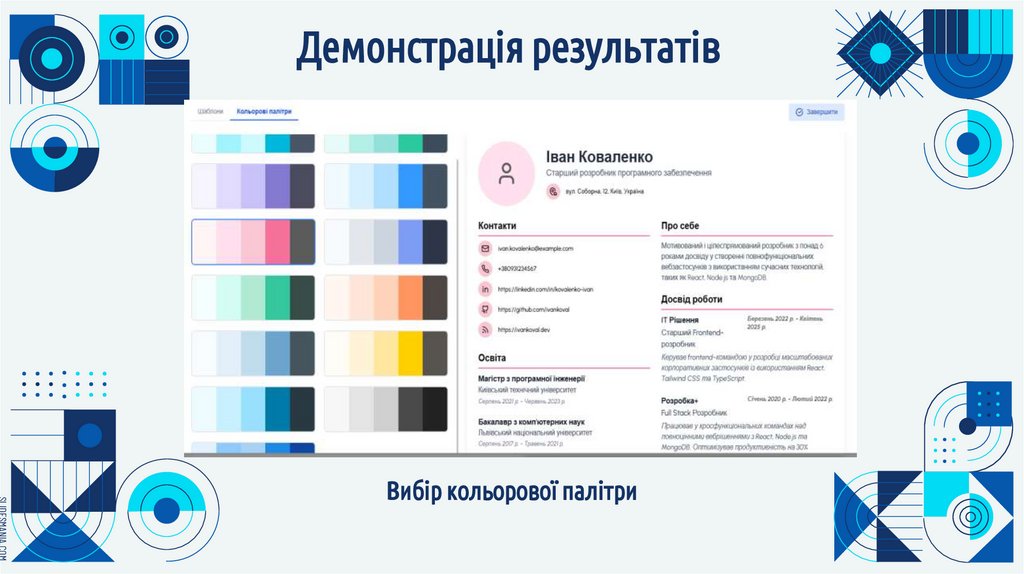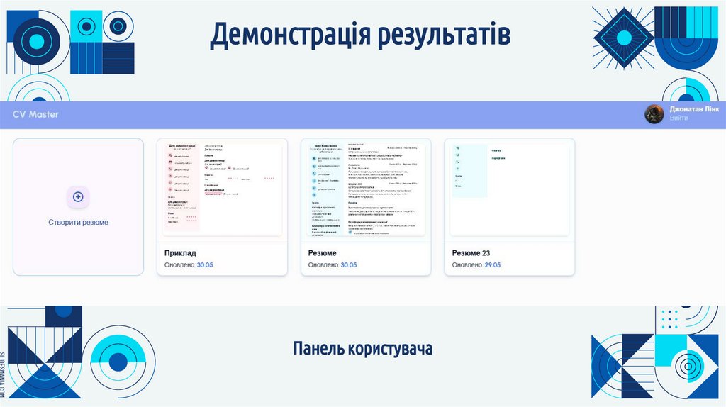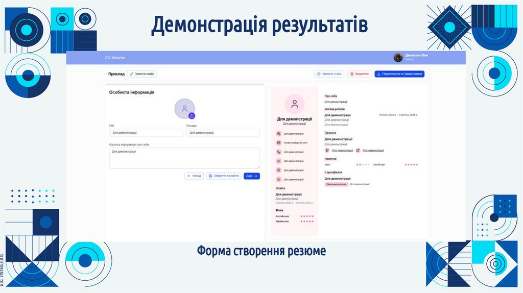 реалізовано функціональну систему конструктора резюме з адаптивним