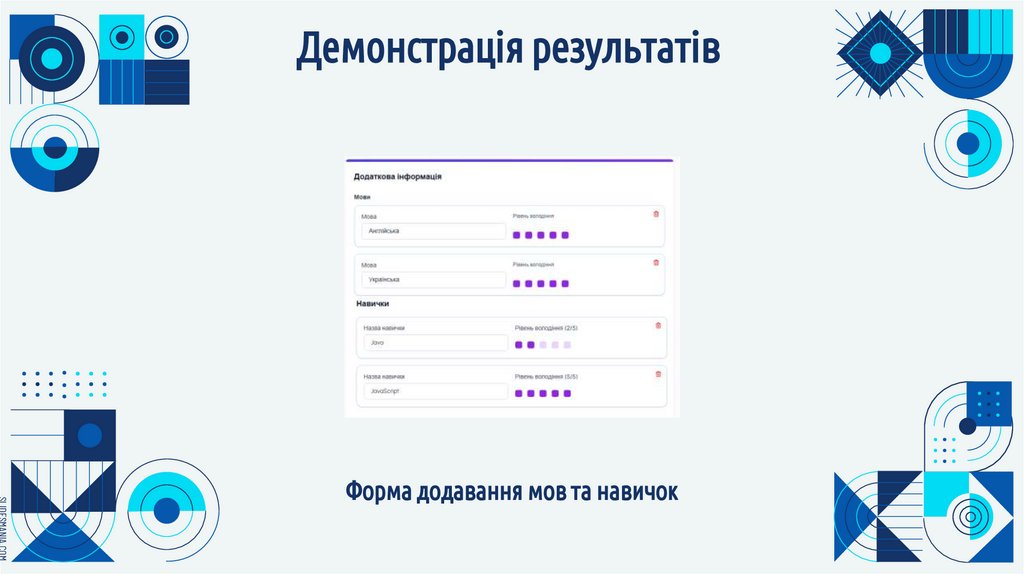 Форма додавання мов та навичок